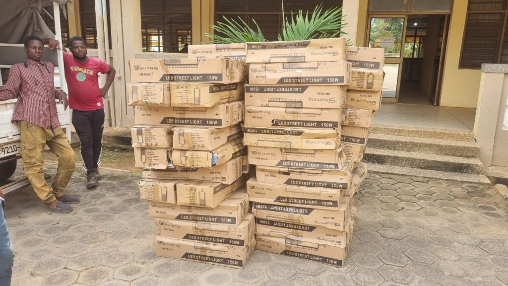 The streetlights were presented through the Office of the Presiding Member (PM) and are to be distributed evenly among all electoral areas in the municipality. Under the arrangement, each Assembly Member will receive two boxes of streetlights for installation in their respective communities.