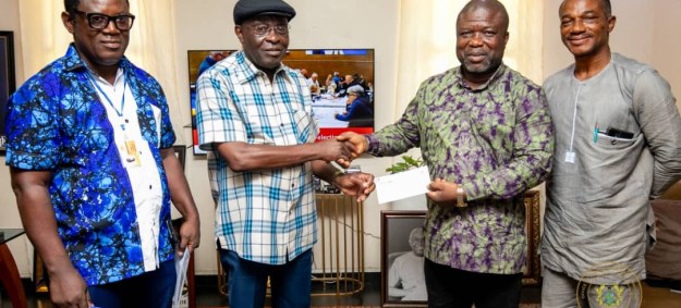 The Volta Regional Minister, Hon. James Gunu, accompanied by the Regional Director of Agriculture, Mr. William Dzamefe, paid a courtesy call on Mr. Horgle at his office, where they received the donation on behalf of the Volta Regional Coordinating Council.